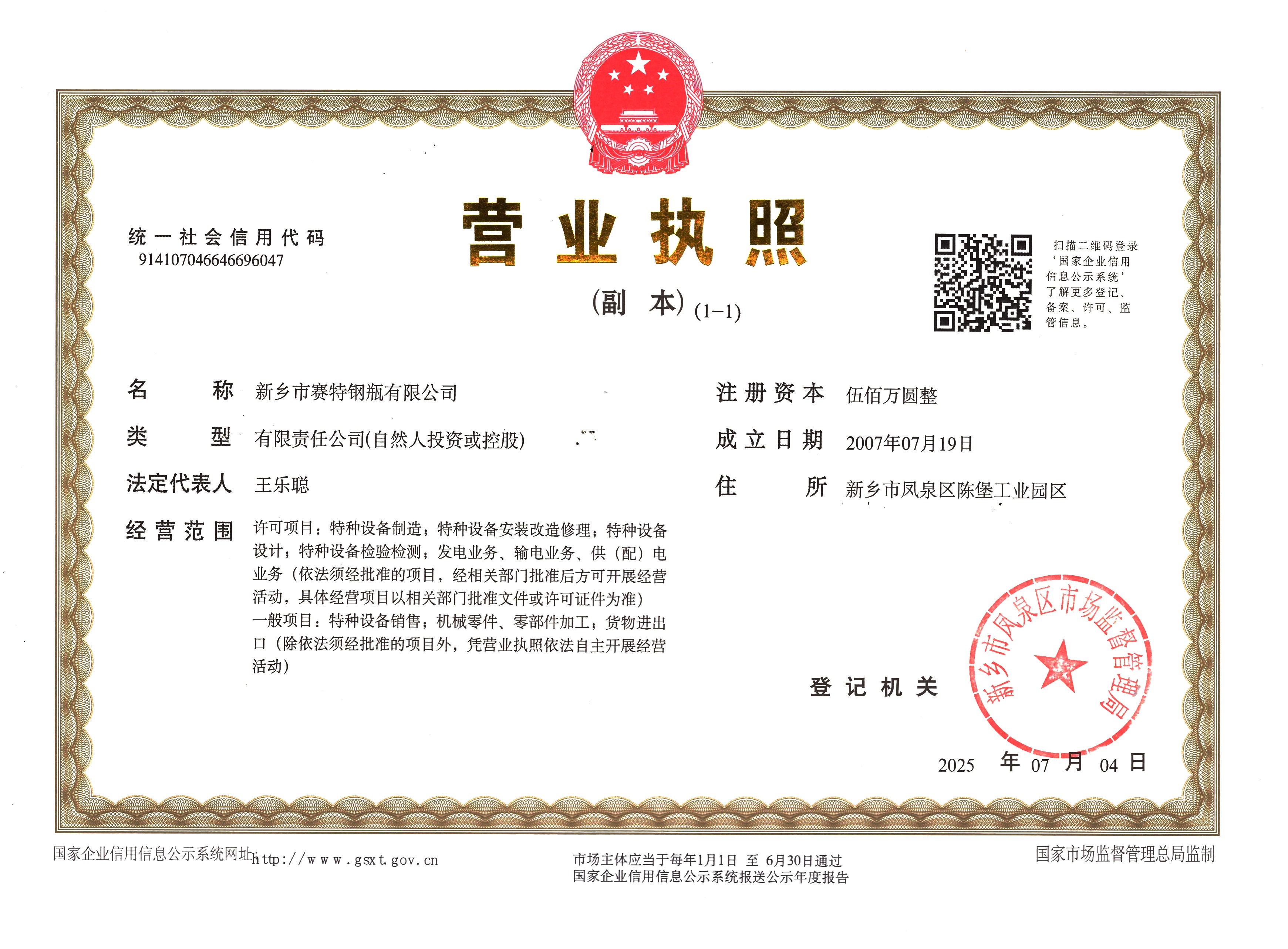 新鄉(xiāng)市賽特鋼瓶有限公司
